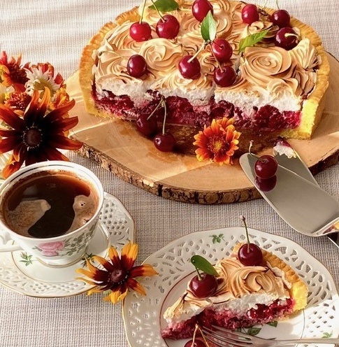 Этот удивительно вкусный летний пирог с сочной вишней и воздушной меренгой не оставит никого равнодушным. Приготовление такого лакомства займет всего пару часов, а вот съедается оно за считанные минуты. Обязательно стоит порадовать своих близких этим деликатесом в преддверии выходных!