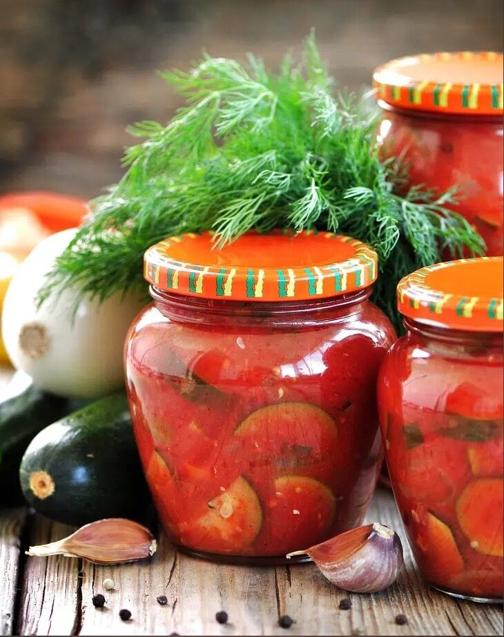 Незаменимый рецепт: маринованные кабачки в томатном соке на зиму