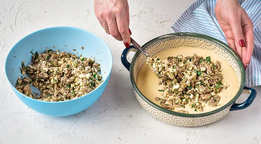 Тесто для заливных пирогов готовится быстро. Это простая смесь на основе муки, яиц и растительного масла, которая иногда также включает кефир или сметану. Это отличный способ использовать кисломолочные продукты, оставшиеся в холодильнике. Для подготовки пирога необходимо лишь вылить половину теста в смазанную форму, уложить начинку и залить оставшейся частью теста.