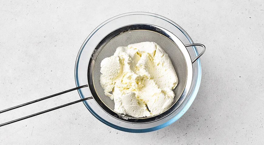 В глубокой миске соедините тщательно перетертый творог с мягким маслом. Добавьте туда яйцо, сахарную пудру и щепотку ванилина. Все ингредиенты следует перемешать до получения однородной массы; для этого можно воспользоваться погружным блендером, чтобы добиться лучшей консистенции.