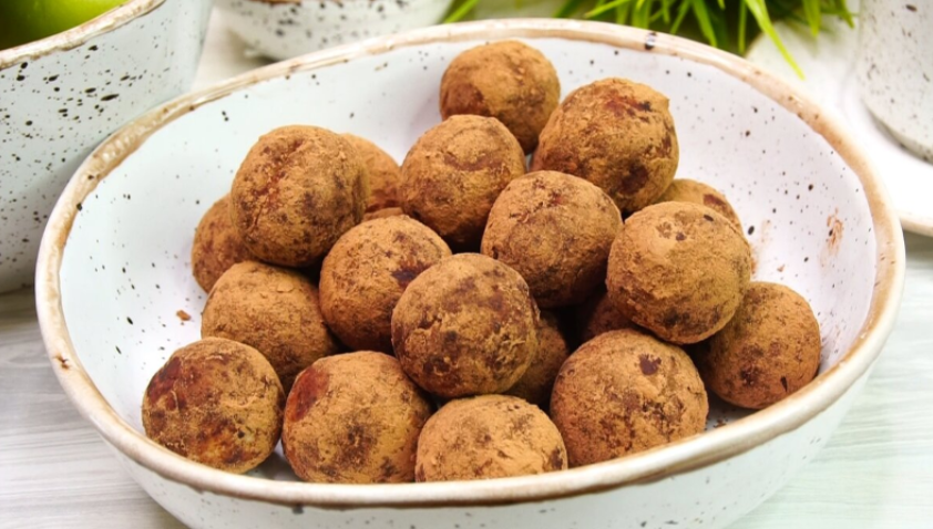 4. Из полученной массы сформируйте небольшие колобки и обваляйте их в какао-порошке.