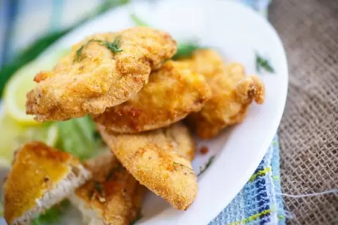- Чтобы корочка была более насыщенной, стоит попробовать дважды обвалять филе в кляре.