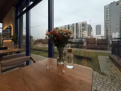Интерьер заведения выполнен в минималистичном стиле: большие окна, позволяющие впускать свет, и просторные столы, подходящие для фрилансеров и любителей арт-творчества, создают приятную атмосферу. «Ривер» подходит как для продуктивной работы, так и для уютных встреч с друзьями.