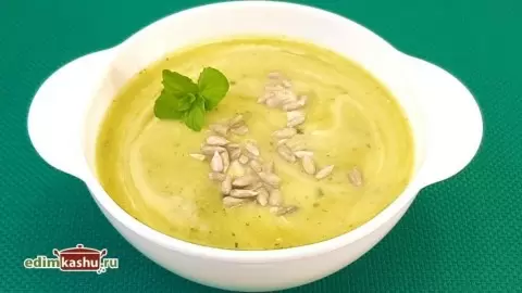 Далее суп нужно варить на медленном огне около 20-25 минут до тех пор, пока кабачки не станут мягкими. После этого кастрюлю стоит снять с огня и дать смеси немного остыть. Слить бульон, а овощи соединить с лимонным соком и мятой, затем тщательно пюрировать массу с помощью блендера.