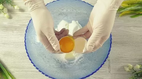 В глубокой миске смешайте сахар, яйцо, сметану, соль и ванилин. Эту массу стоит чуть перемешать, после чего добавить растительное масло. Затем аккуратно введите муку и разрыхлитель, замесите тесто. На это количество ингредиентов обычно уходит именно 300 граммов муки, в результате получается нежное тесто, которое не липнет к рукам.