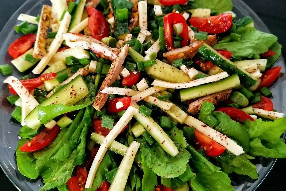 Салат с индейкой и сулугуни – это идеальное блюдо для любителей легких и полезных перекусов. Сочетание свежих овощей, нежного мяса и ароматного сыра создаёт невероятный вкус, который придется по душе каждому. Этот изысканный салат легко готовится и станет настоящей находкой для любого стола.