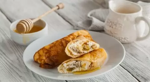 Для любителей тонких блинчиков есть замечательный рецепт, который обязательно стоит попробовать. В этом блюде гармонично сочетаются топлёное молоко, творог и сладкий мёд.