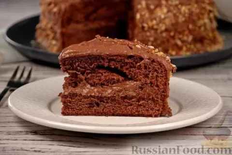 - Шоколадный торт с кремом из сметаны и сгущёнки. Этот торт — настоящий шалун среди сладостей. Пышные бисквитные коржи, пропитанные коньяком, и обволакивающий шоколадный крем делают его практического неотразимым для любителей шоколада.