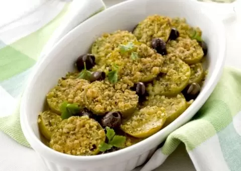 - Запеченные зеленые помидоры с творогом и пряностями.