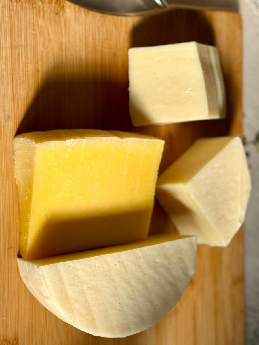 Важно отметить, что наш Канестрато — выдержанный сыр, который созревает минимум три месяца. Последняя головка была приготовлена полгода назад, и именно поэтому она обладает таким богатым цветом и ароматом. В сыроварении терпение — ключ к вкусу!