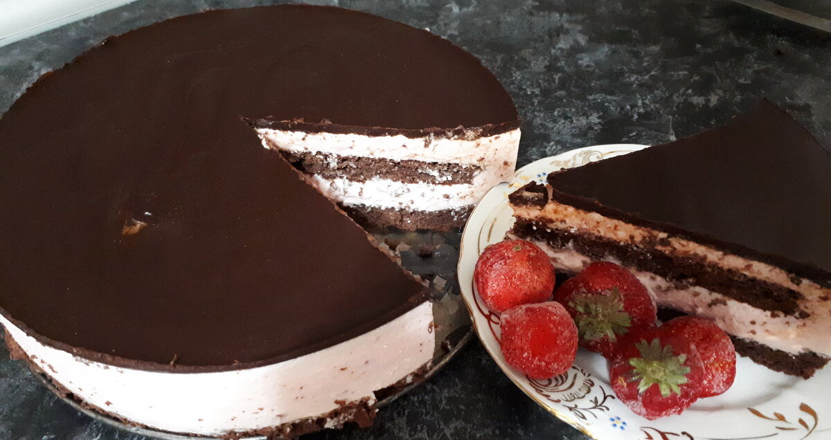 - Шоколадный бисквит (3 яйца, 3 ст. л сахара, 3 ст. л муки, 1 ст. л какао)