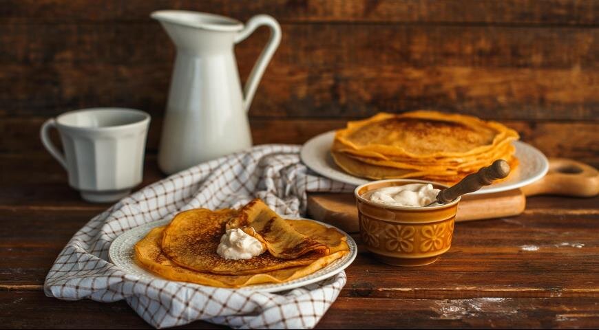 Для приготовления блинов, рассчитанных на 4 порции, понадобятся следующие ингредиенты: