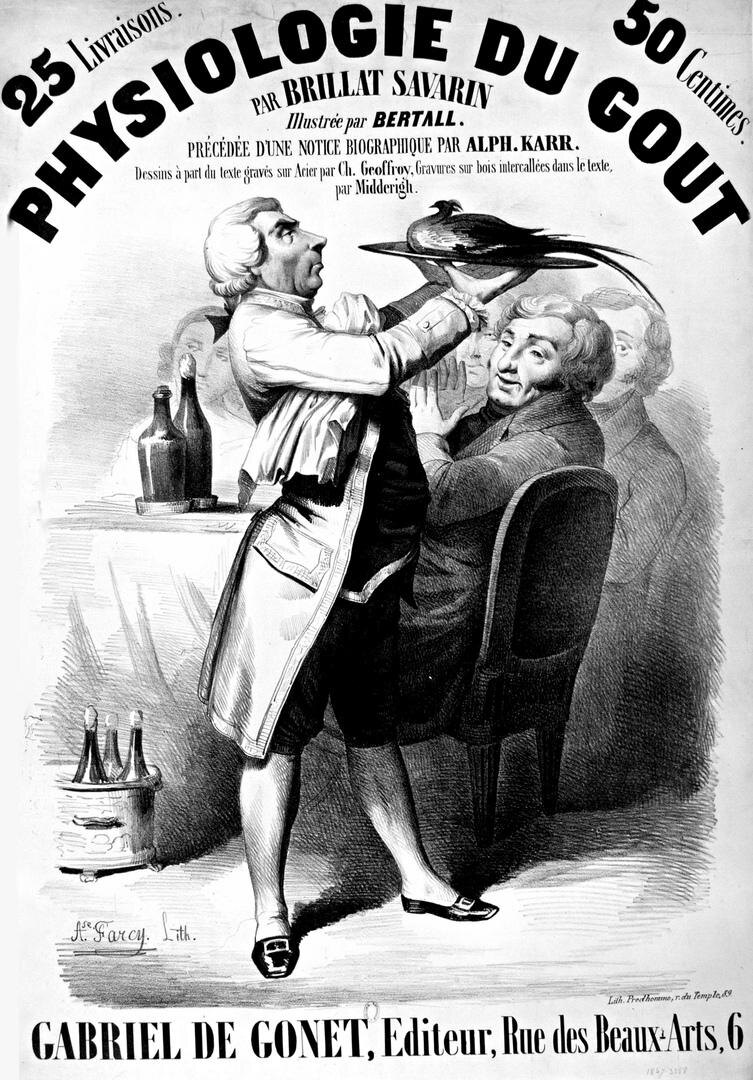 В своей культовой работе «Физиология вкуса, или Трансцендентная кулинария», изданной незадолго до его смерти в 1826 году, Брийя-Саварен запечатлел великую страсть к еде. Несмотря на свое вычурное название, книга считается образцом научного и литературного труда, в котором он излагает все нюансы наслаждения пищей и раскрывает зависимость между вкусовыми ощущениями и социальными взаимодействиями, особенно во время совместных приемов пищи.