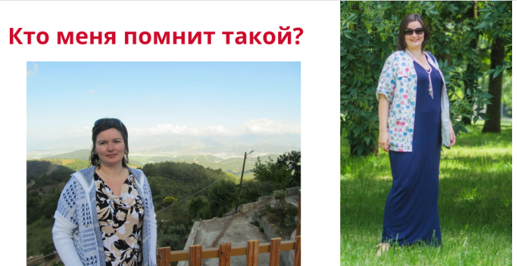 Но, чтобы объяснить свой путь, нужна не одна фраза. Это обширная история: начиная с причин появления лишнего веса и трудностей его снижения, и заканчивая новыми подходами к питанию и поддержанию достигнутого результата. Изучение информации, рецептов и программ — вот что привело к значительным изменениям.