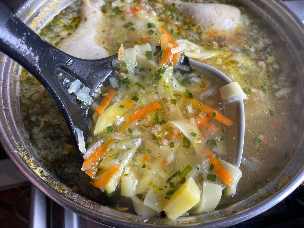 Суп готов! Он наваристый, ароматный и вкусный — именно такой, как готовила бабушка. Приятного аппетита!