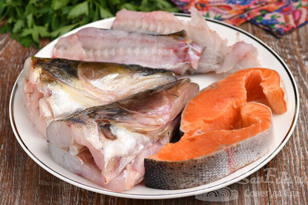 Для этого супа понадобится голова и хвост горбуши весом около 1,2 кг. Рыбу кладут в чуть более 2 литров кипящей воды, добавляют соль, лавровый лист и перец. После 15 минут варки, рыбу извлекают, а бульон процеживают.