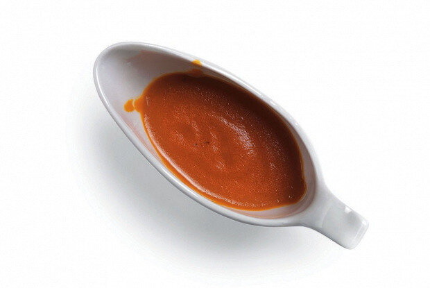 3. После этого смесь нужно переложить в блендер и тщательно взбить. Процедите соус через мелкое сито, чтобы избавиться от лишней текстуры, и снова верните на огонь. Не забудьте посолить и варить, пока сальса не достигнет необходимой консистенции. В завершение аккуратно введите мелко нарезанное холодное сливочное масло, взбивая венчиком до получения однородной массы.