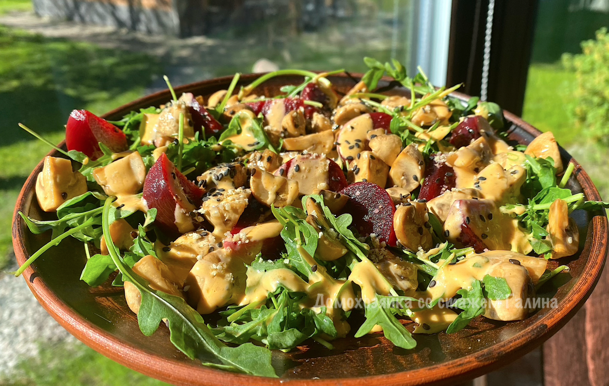 Салат, который обязательно порадует гурманов своим свежим и ярким вкусом, идеально подходит для летних пикников и обедов на свежем воздухе. Основу этого блюда составляют ароматная маринованная свекла и жареные шампиньоны в пикантном соусе.