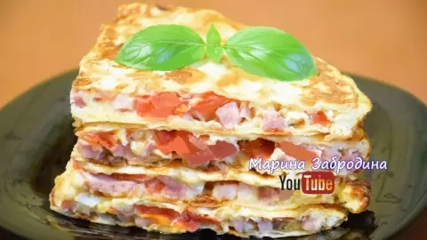 Обжаривание: Разогреть сковороду, смазать сливочным маслом, затем положить первый круг лаваша. Посыпать его половиной натертого сыра, после чего вылить подготовленную яичную смесь. Сверху равномерно распределить ветчину и оставшийся сыр.
