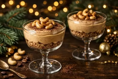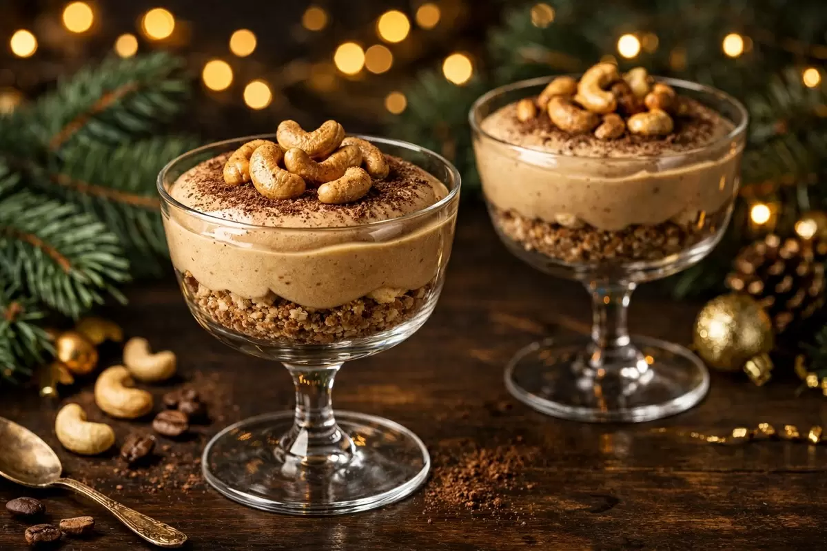 Совет по сервировке: стеклянные креманки подчёркивают слои и ореховую крошку, делая подачу особенно приглушённой и аппетитной.