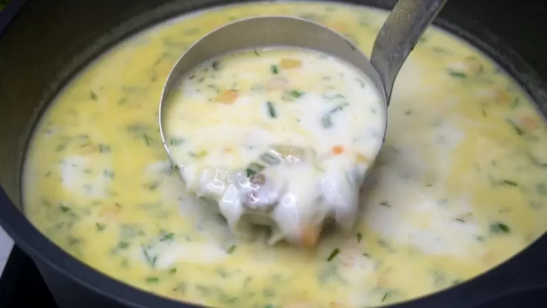 Как только картофель станет мягким, добавляем плавленый сыр и, по желанию, сливки. Можно обойтись и без одного из ингредиентов, но сочетание обоих делает суп особенно кремовым и вкусным. Перед подачей добавляем нарезанный укроп для аромата.