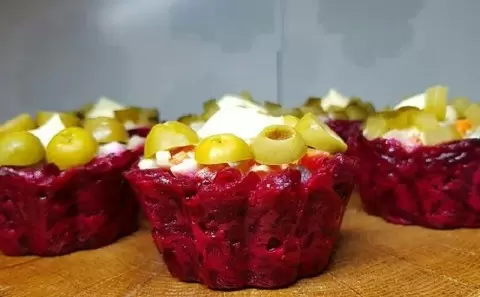 Когда-то «Селедка под шубой» произвела настоящий фурор на столах, став символом русского застолья. С течением времени вкусы стали разнообразнее, и концепция закусок с рыбой и овощами остаётся актуальной. В последние годы популярность порционных салатов возрастает: они выглядят привлекательно и легко воспринимаются даже на стоячих приемах. Свекольные корзинки — это не только как никогда свежий подход, но и возможность насладиться привычной вкусовой палитрой в компактной форме, идеально подходящей для праздничного стола.