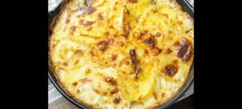 Иногда в простоте кроется самое «домашнее»: тонко нарезанный картофель в сливочном соусе с сырной корочкой — и обед готов без лишних движений.