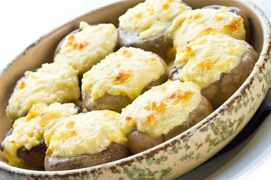 Для лучшего результата выбирайте крупные шампиньоны, чтобы они могли вместить больше начинки.