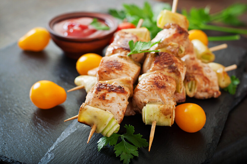 - Кабачки и курица: Нежные и сочные шашлычки, которые идеально подойдут для дачного ужина.